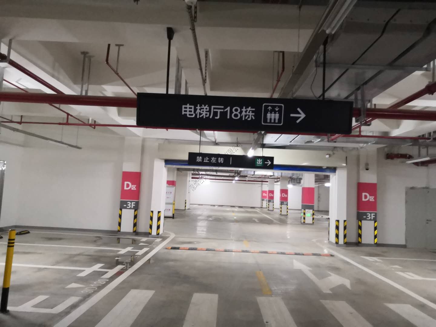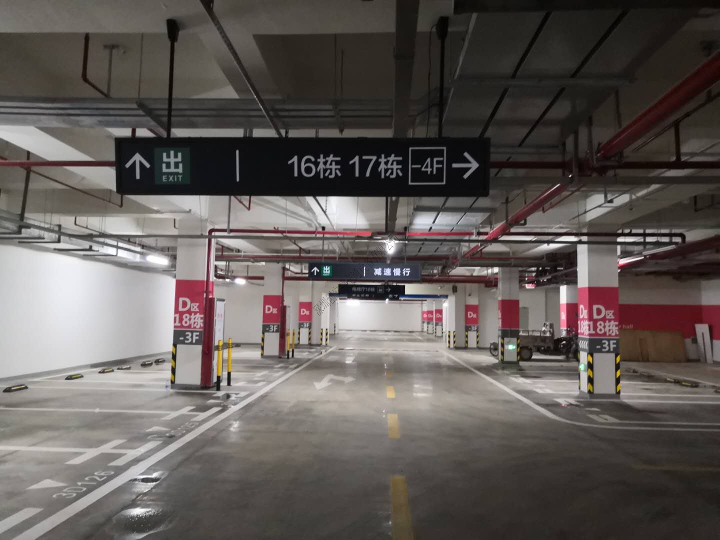 華為松山湖基地是華為終端公司新總部所在,該項目投資約100億元,主要發展與手機等所有終端關聯的研發、銷售和增值業務。項目一期占地面積約60.3萬平方米,地上建筑面積約38.8萬平方米,地下建筑面積約30.8萬平方米,分六個組團,共有五十個單體。創安順負責地下車庫以及園區路牌標識等交通設施產品,現場照片如下: