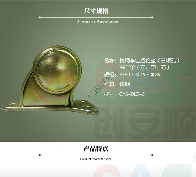 名稱:彩鋅鋼構(gòu)車位擋輪座(三個(gè)螺絲孔)規(guī)格:φ60/φ76/φ89mm材料:鑄鐵型號(hào):CAS-DLZ-5適用:停車場(chǎng)車位