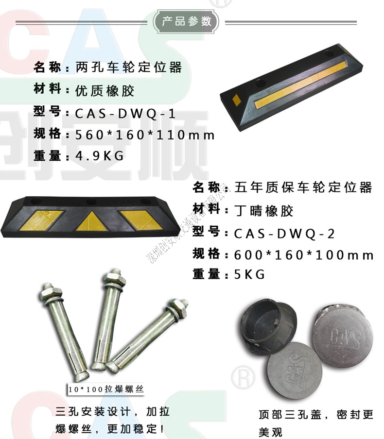 溫馨提示:CAS丁晴橡膠橡膠車輪定位器采用丁晴橡膠橡膠制成,可根據不同使用環境適當調節材料使用,增強定位器使用壽命,創安順歡迎您前來選購定制。