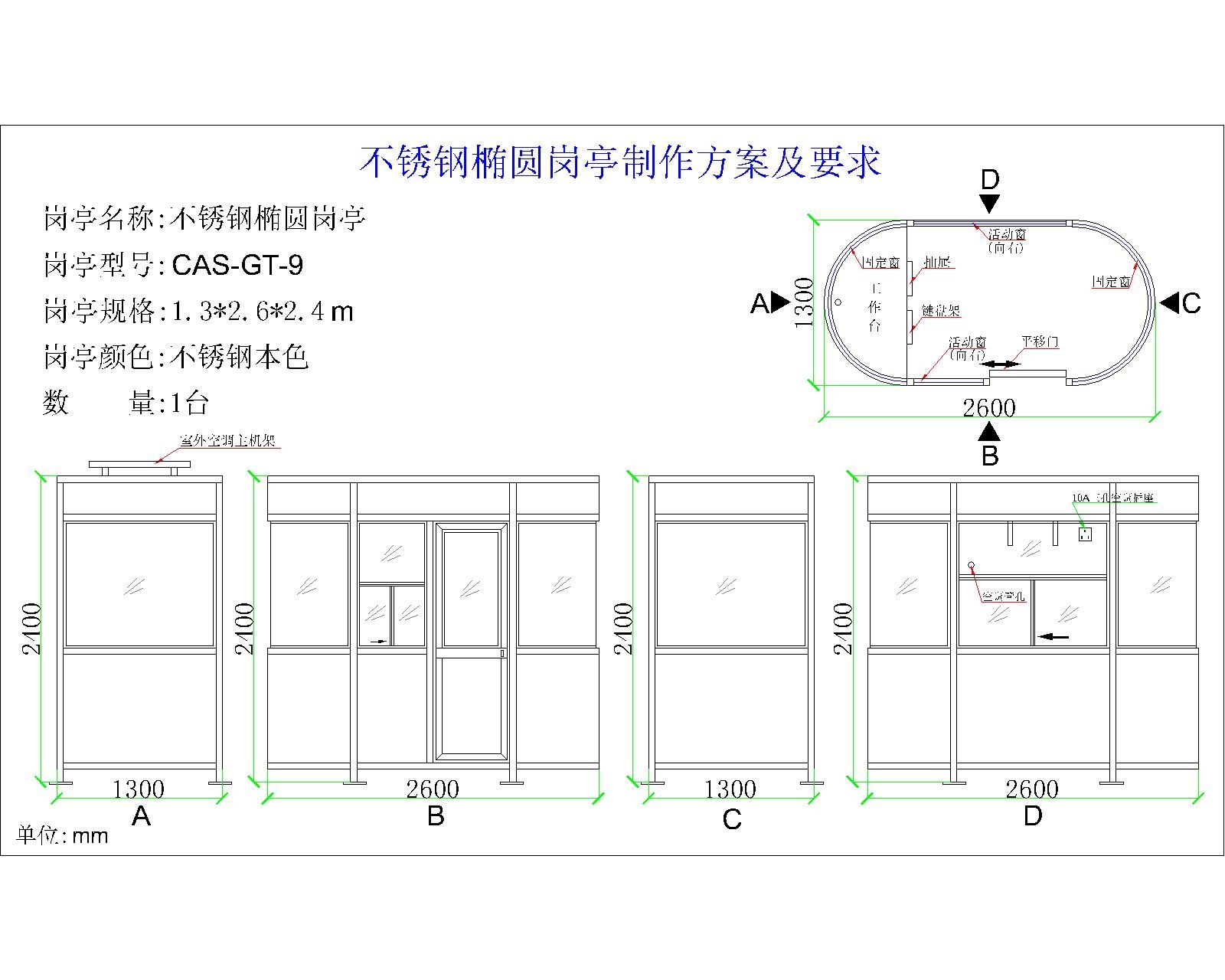 崗亭顏色:不銹鋼本色