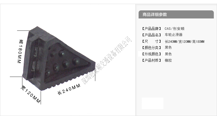 名稱:車輪止滑器規(guī)格:240×180×120mm材料:橡膠型號:CAS-ZAQ-1適用:上下坡停車專用