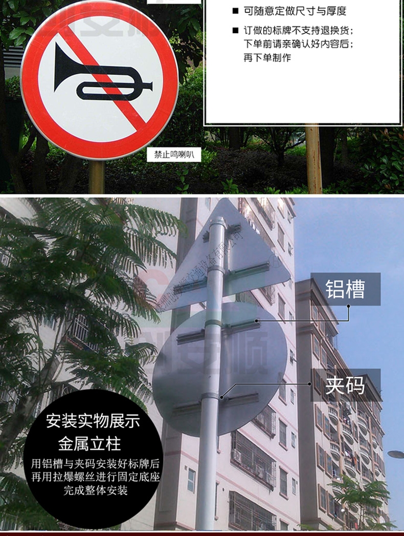 產品特點:1. 激光切割,沖壓模具成型,液壓機器卷邊,強度高、更美觀。2. 用于停車場,人行道更安全。3. 采用鋁板制作,防腐功能更佳。4. 反光膜貼在標牌凹面,安裝運輸時更方便。