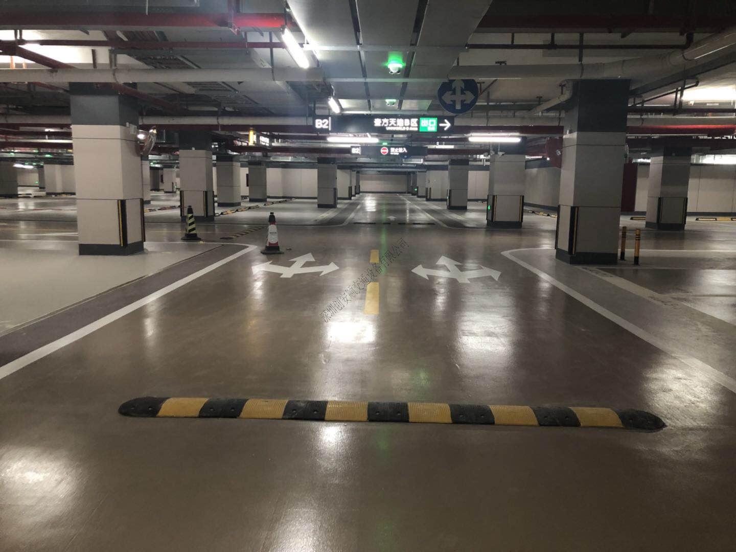 由創安順施工員工裝載壹城中心地下車庫設施前往場地安裝施工。
