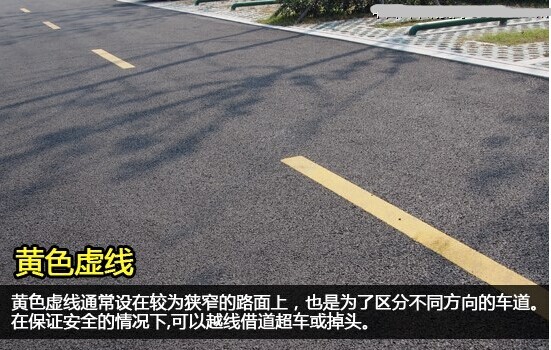 黃色虛線也是為了區分不同方向的車道,通常設置在較為狹窄的路面上。而不論單黃線還是雙黃線,只要是虛線,就可以越線借道超車或掉頭,當然必須要在保證安全的情況下。